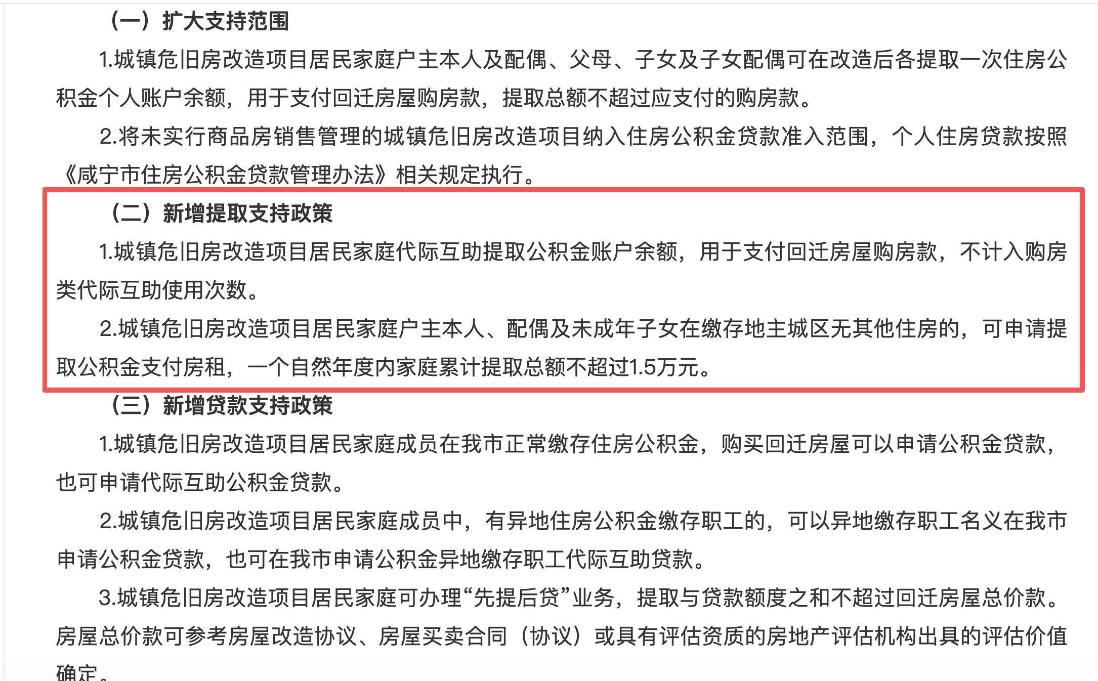 咸宁:新增提取支持政策